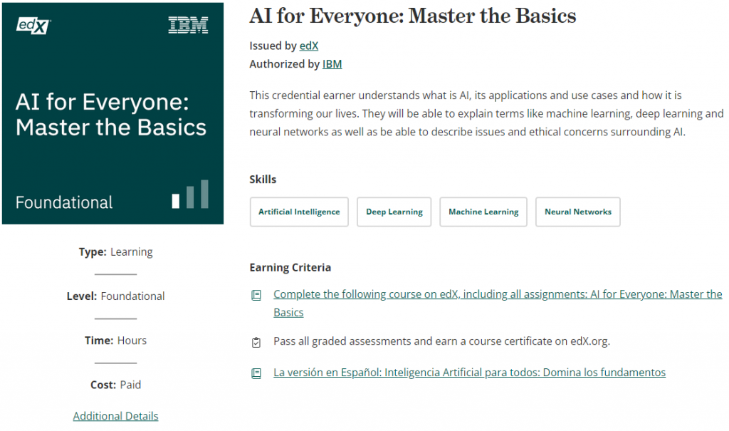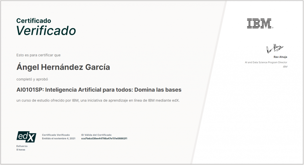 Professional Certificate in IBM about Fundamentals Artificial Intelligence.